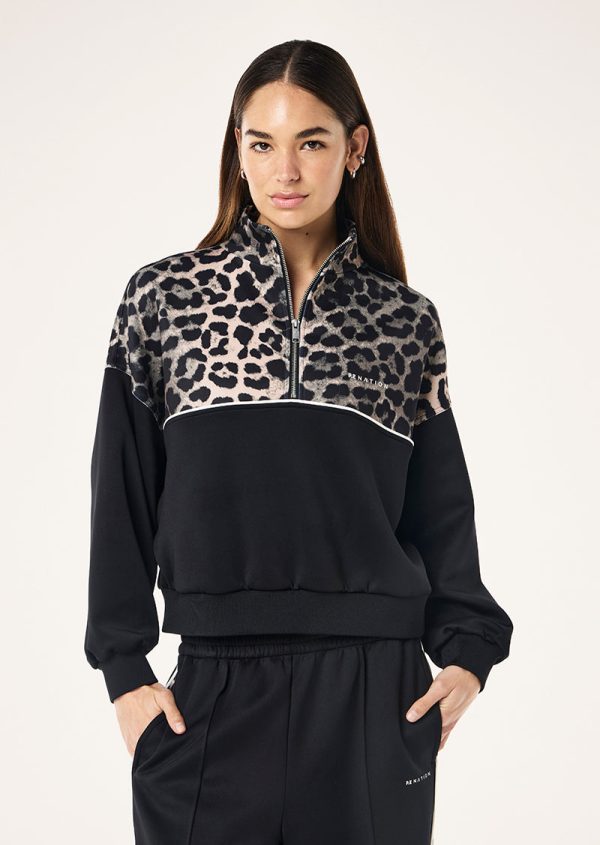 The Boundless Zip Neck Sweat in Black & Leopard is made from a soft ponte, scuba like fabric, this relaxed fit quarter zip sweat features a seasonal P.E Nation logo at centre left. Style this sweat with the matching Man Down trackpant for an elevated casual look.