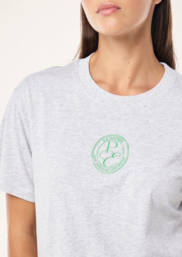 The Exposition 2 Tee in Grey Marl is Made from a medium-heavy weight cotton jersey. This relaxed-fit, lifestyle tee features a rib crew neck and a centre front P.E Nation seasonal graphic. Ideal for lounging, style this tee with a bike short or your favourite loose-fit pant for all-day wearing comfort.