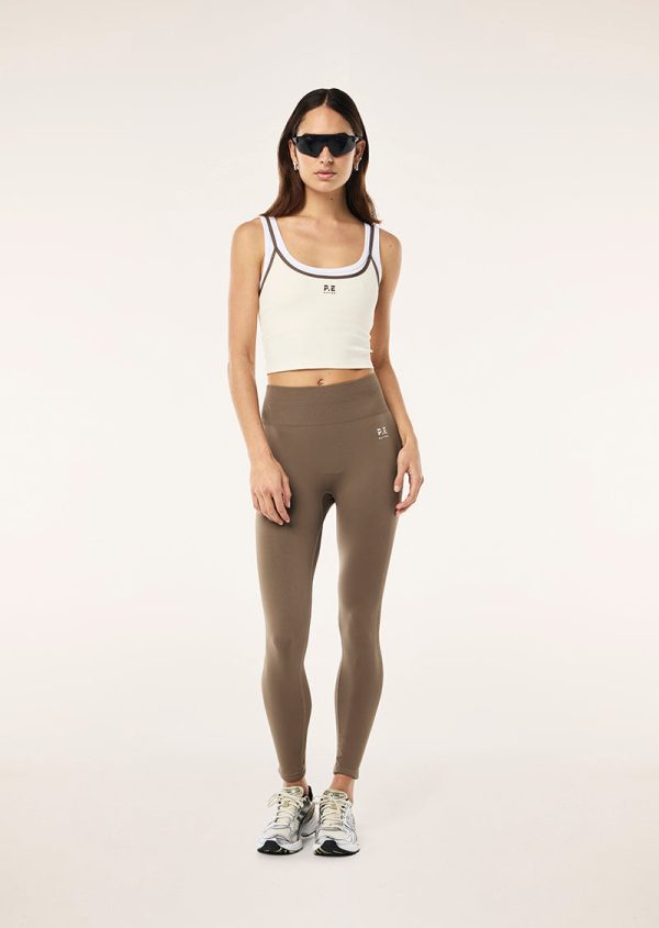 The Forward Tank in Whisper White & Walnut is our best selling tank in a new colourway. Made from a soft ribbed fabric, this tank has double layer detailing, along with a scoop neckline and an elasticated hem. Perfect for low-intensity movement, you won’t want to take this off.
