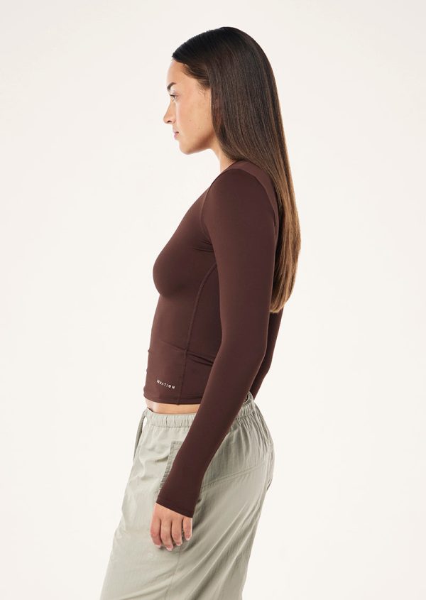 The Foundation Long Sleeve Top in Mahogany is designed in our luxuriously soft fabrication, Body Luxe. This slim fit long sleeve active top will offer all day wearing comfort. Style the top with an active legging or pair with a relaxed-fit pant for an elevated off-duty look.