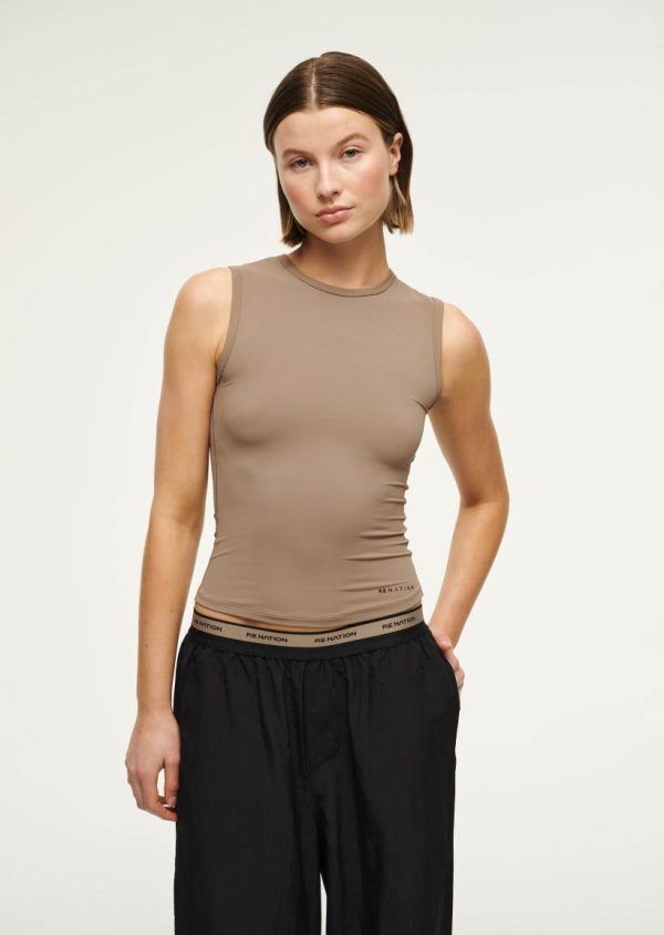 P.E Nation FOUNDATION MUSCLE TANK IN FOSSIL | Women Tank Tops