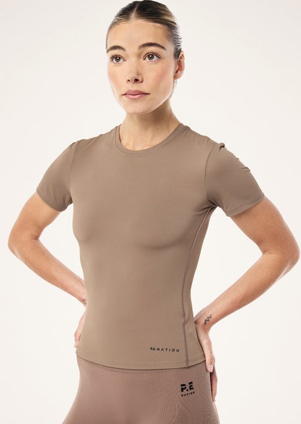 P.E Nation FOUNDATION SHORT SLEEVE TEE IN FOSSIL | Women Tees