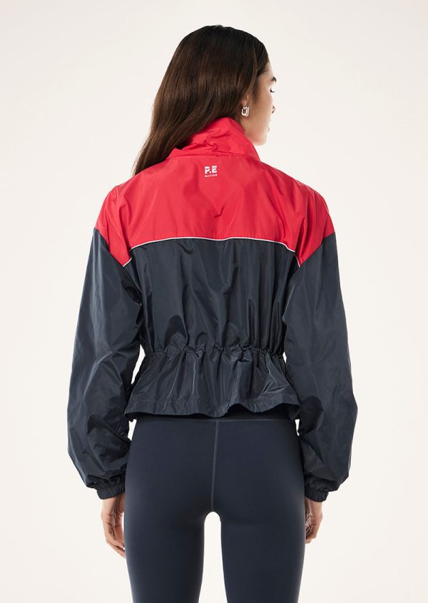The Frontier Jacket in Marine Blue is designed in a lightweight shine fabrication. This regular-fit jacket features contrast detailing, chest pockets, elasticated drawcord waist and is finished with P.E Nation logo on chest and centre back. Wear this versatile lightweight jacket over activewear for an elevated athleisure look.