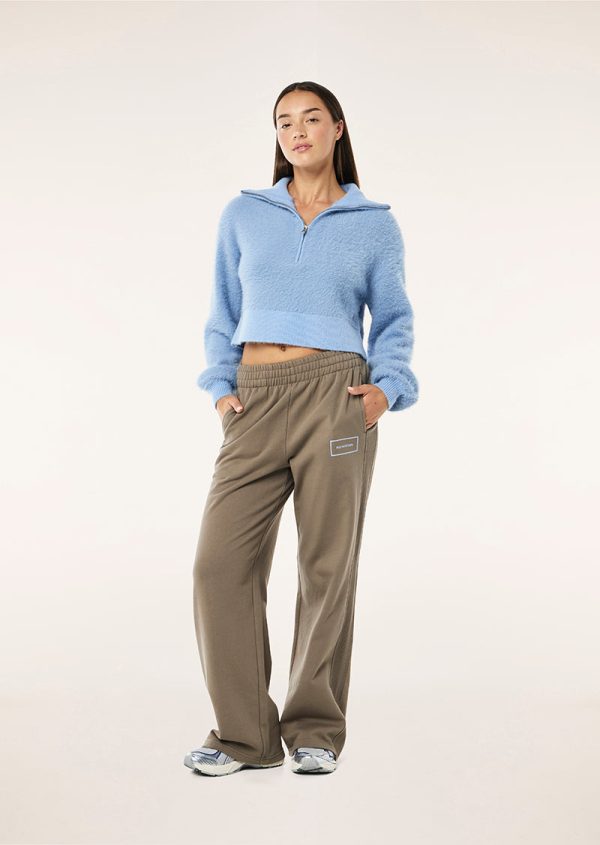 The Greenpoint Knit Zip Neck in Dusty Blue Knit is crafted from a premium heavy-weight and luxuriously soft fluffy fabrication. This half-zip sweater features a relaxed fit and subtle embroidered logo at the left waist for a refined finish. Perfect for layering, wear it over your active sets to transition seamlessly from workout to weekend.