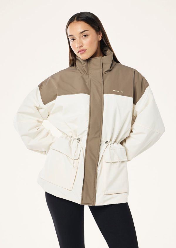 The Guild Jacket in Whisper White is designed for comfort, style and warmth. This lightly padded jacket features a hood, central zip for easy layering and two chest patch pockets for added functionality. The elastic internal drawcord at the waist allows for a customisable fit, enhancing your silhouette while keeping you comfortable. Finished with a printed logo on both front and back, the Guild Jacket is perfect for transitioning between workouts and everyday adventures.