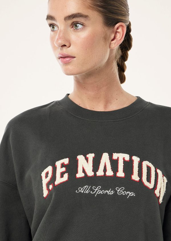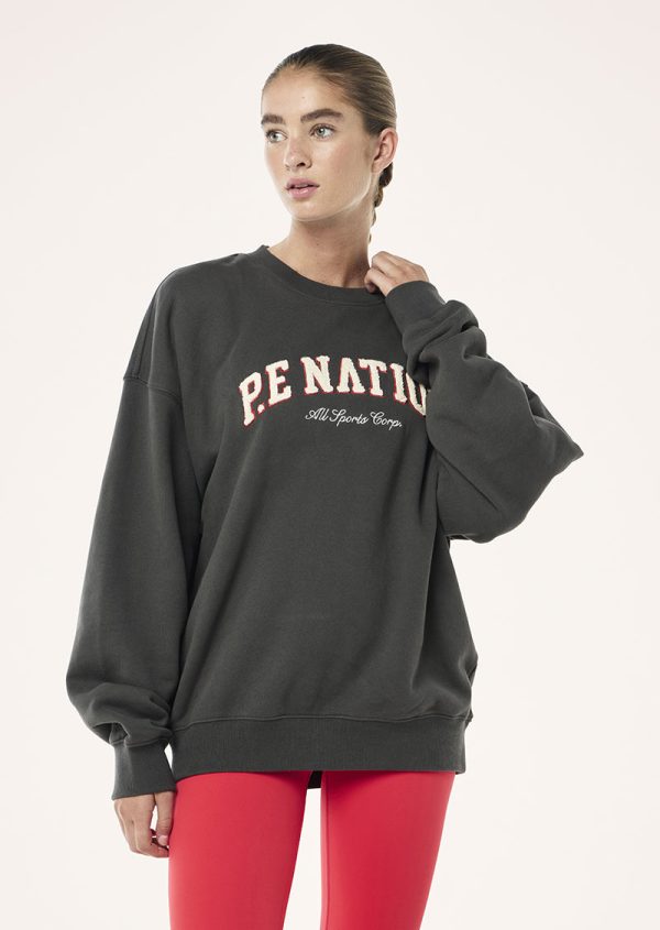 The Heritage Sweat in Gunmetal is a P.E Nation Exclusive. An elevated essential for building your basics wardrobe. This relaxed fit crew neck sweater features a custom P.E Nation boucle graphic at centre front. For the complete set, style this sweat with your favourite P.E Legging.
