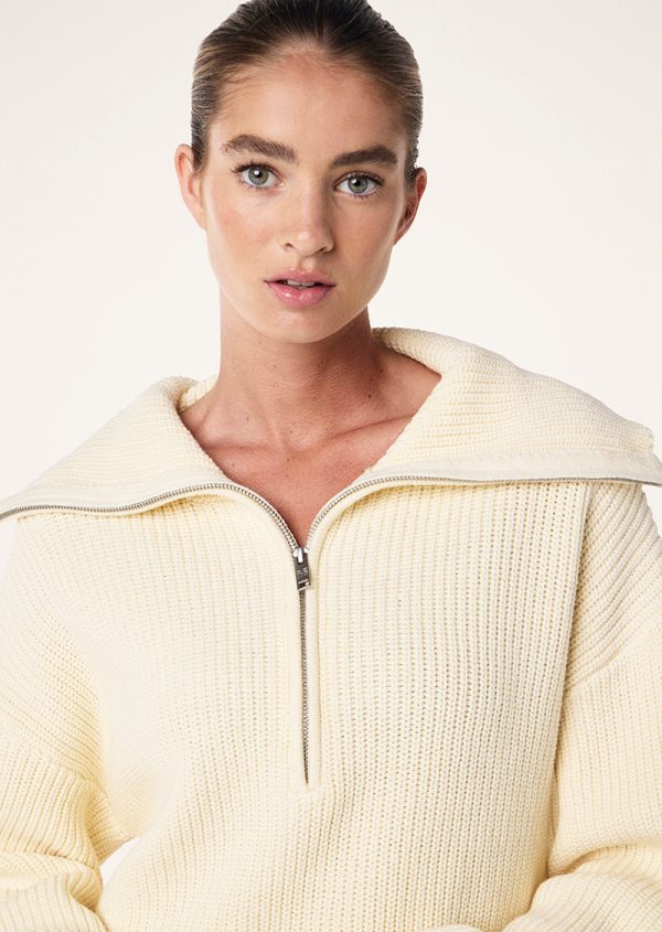The High Season Zip Neck Knit in Whisper White comes as part of our FUTURE MODERN Collection. Made from a cotton blend, this cropped, relaxed fit high neck zip sweater features a ribbed hem and an embroidered P.E Nation logo on the hem. This is the ultimate knit that you will continue to wear season after season.