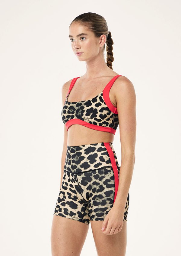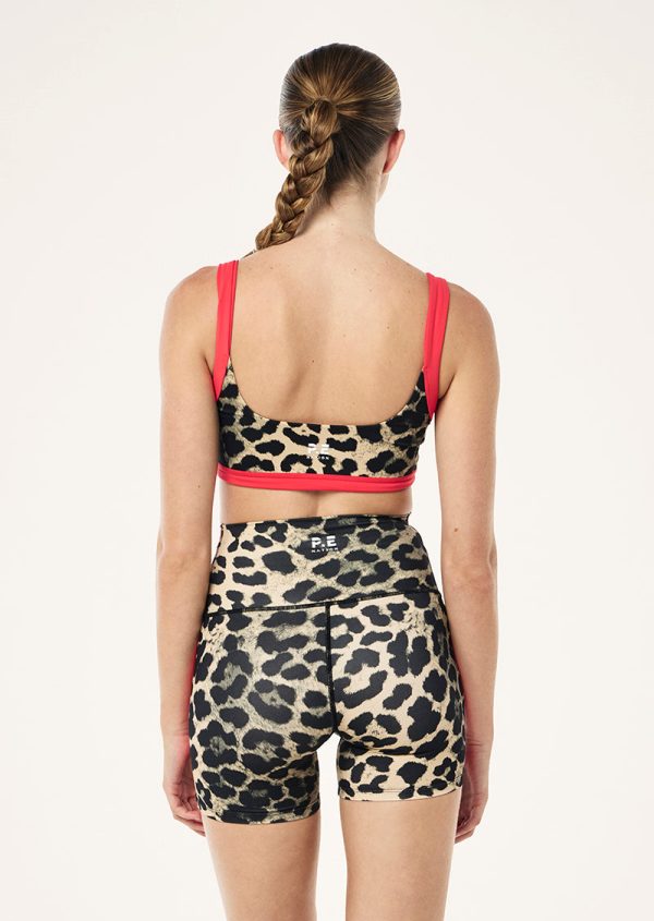 The Highgate 5” bike short in Leopard & Strawberry is made in Active Lite, our most lightweight active fabrication. This bike short features a contrast panel detail at the side and a P.E Nation logo at the centre back waist. Complete the set by styling this with the matching Vivid Sports Bra.