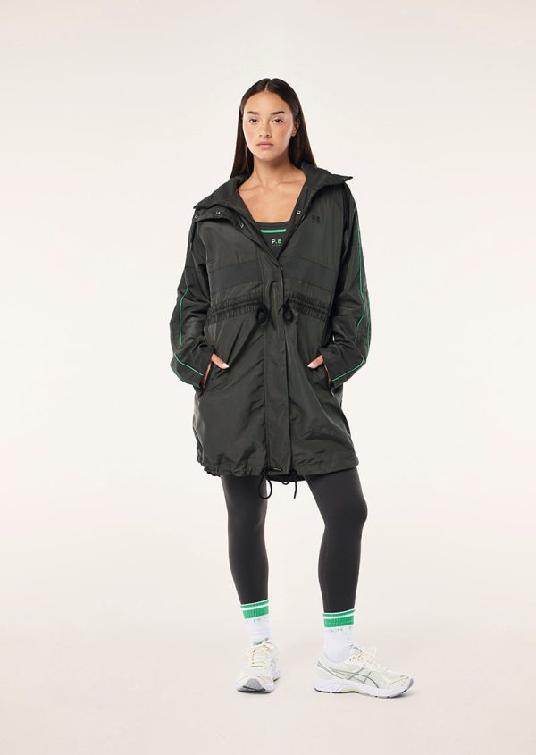 The Mid Length Man Down Jacket in Caviar & Kelly Green is perfectly made from our new heavier weight spray fabrication. This heavy weight jacket features panelling on body and sleeve, zip pockets and a drawcord at the neckline and hem. Ideal for cooler weather, wear your jacket over active wear for an added layer of warmth.
