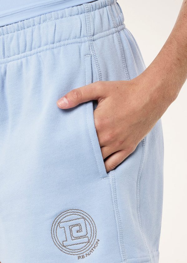 The Output Short in Dusty Blue is made in a soft loopback cotton, these relaxed fit track shorts feature an encased elastic waistband, flatlock stitching on either sides, bound hems and a P.E Nation front logo print. Style these shorts over activewear or pair with a relaxed fit tee when lounging.