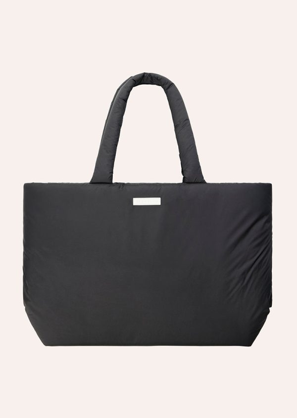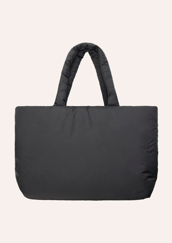 The Palais Puffer Bag in Black is designed in a luxurious matte polyester spray fabrication. The puffer tote bag features a shoulder strap, zip closure, a P.E Nation custom P.E Nation rubber logo and an internal pocket. Ideal for carrying all your everyday essentials, wear this tote on-the-go all year long.