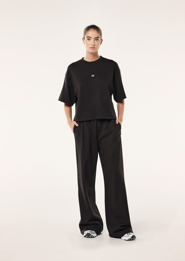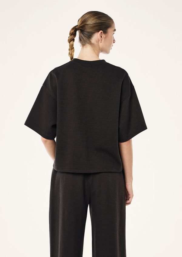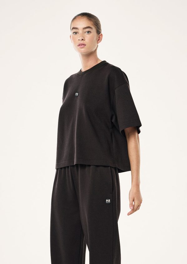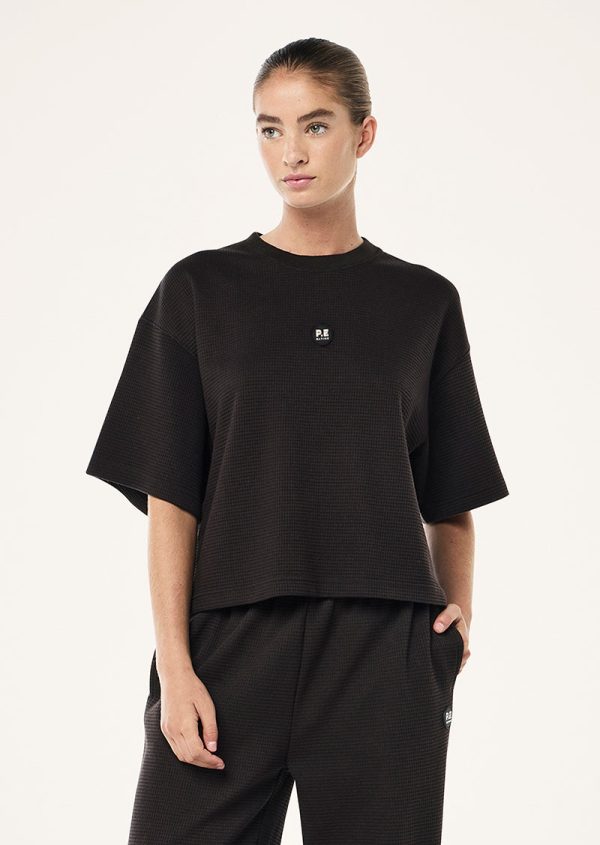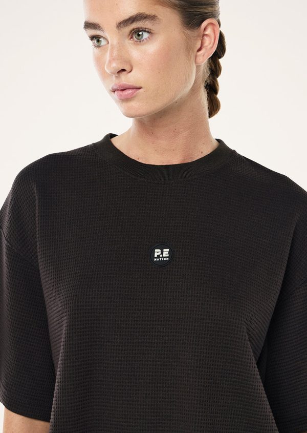 The Printemps Waffle Crop Tee in Licorice is crafted in our new luxe waffle fabrication. It’s unique texture and exceptional comfort makes the slightly oversized cropped tee the ideal everyday item. Elevated with the P.E Nation silicon logo patch, you’ll find this tee completes your basics wardrobe.