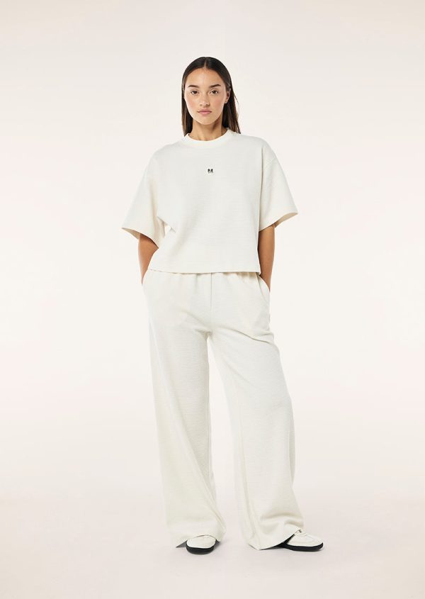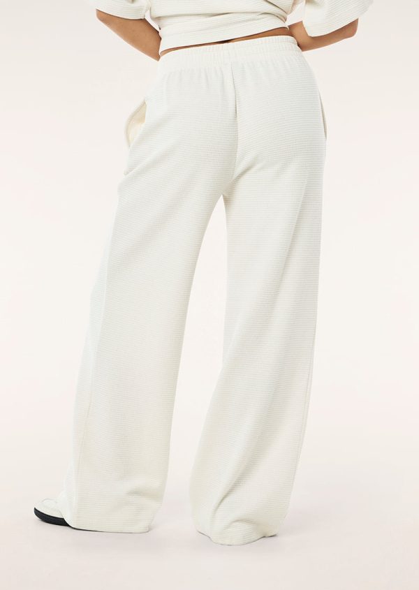 The Printemps Waffle Trackpant in Whisper White is designed in our new luxe waffle fabrication. This relaxed fit trackpant features a functional drawcord and P.E Nation silicon logo patch. Wear this trackpant with the matching Printemps Zip Through for the perfect off-duty set.