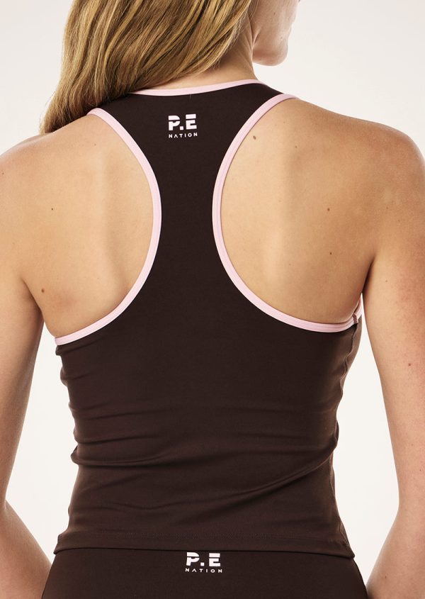 The Renewal Tank in Espresso & Chalk Pink is made from our signature Active Lite fabrication, our most lightweight active fabric. This v-neck tank features a contrast bind around the neck and armholes, an inbuilt bra with removable cups and a contrast silicon print logo at the rear neck. Ideal for low-medium workouts, wear this tank with the matching active legging to elevate your active looks.