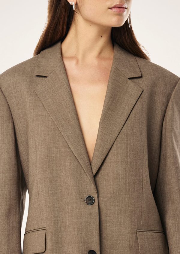 The Residency Blazer in Walnut is made from a wool blend suiting fabrication, this oversized single breasted blazer features an elastic drawcord with a toggle at the back. Style your blazer with our Discovery Pant for an elevated on-duty look.