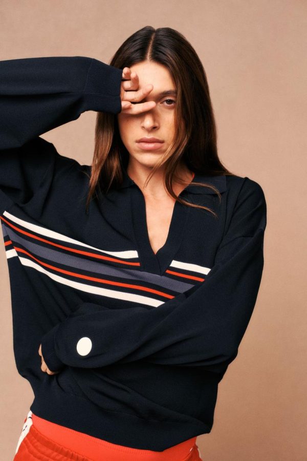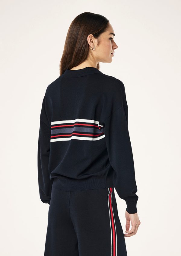 The Retreat Collar Knit in Dark Sapphire is a relaxed V-neck collared sweater that is made from a mid weight knit fabrication that features stripe detailing on the sleeve. This is the ultimate layering piece and pairs well with the matching Retreat Knit Pant and or your favourite leggings for an elevated athleisure look.