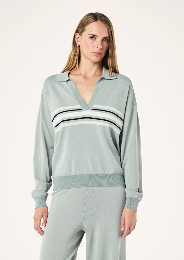 The Retreat Collar Knit in Steel is a relaxed V-neck collared sweater that is made from a mid weight knit fabrication that features stripe detailing on the sleeve. This is the ultimate layering piece and pairs well with the matching Retreat Knit Pant and or your favourite leggings for an elevated athleisure look.