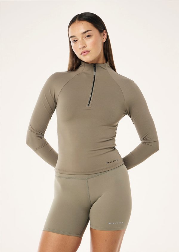P.E Nation ROUTINE QUARTER ZIP LONG SLEEVE TOP IN FAWN | Women Tops