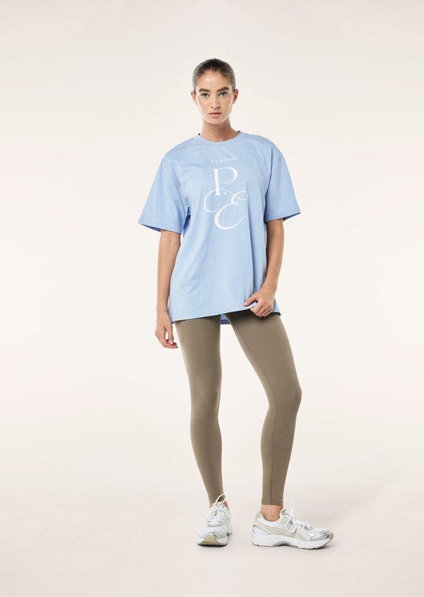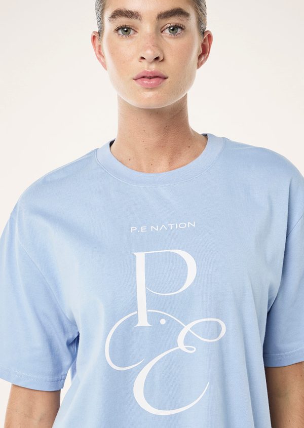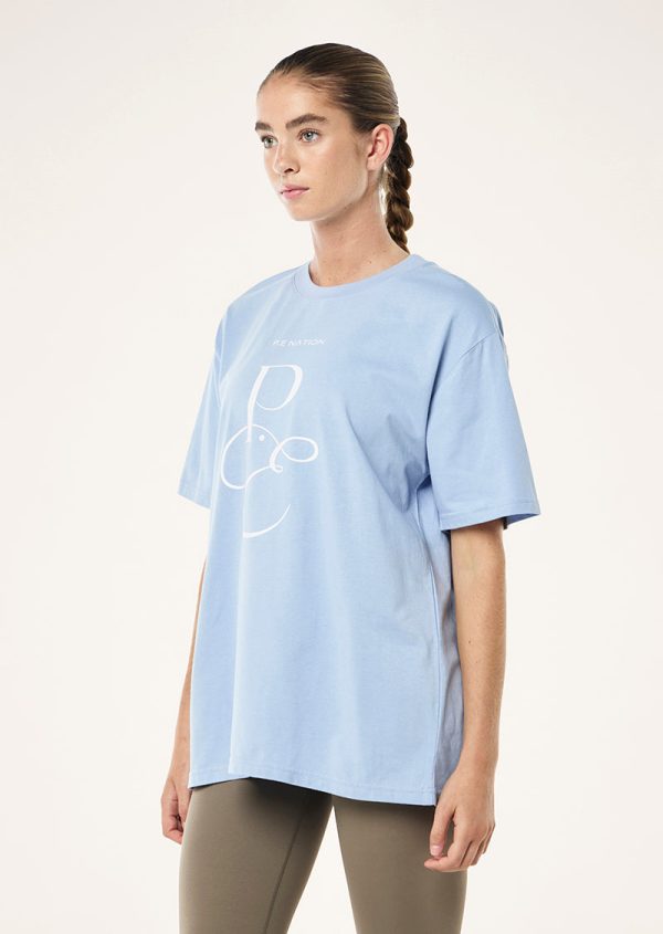 The South Bank 2 Tee in Dusty Blue is crafted in our new heavy weight ,100% organic cotton jersey fabrication. This oversized fit crew neck tee features a P.E Nation seasonal logo at the center front. Style yours with active leggings or our 2.5” bike shorts for an easy athleisure look.