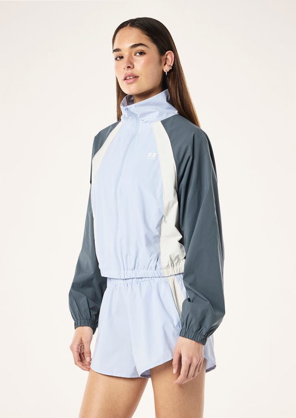 The Venture Jacket in Heather Blue is designed in a lightweight breathable fabrication and is the ultimate layering piece.This relaxed fit jacket features a contrasting rip-stop panel, mesh lining and elastic drawcord with toggles at the hem. Wear this jacket over your activewear while you’re on the go.