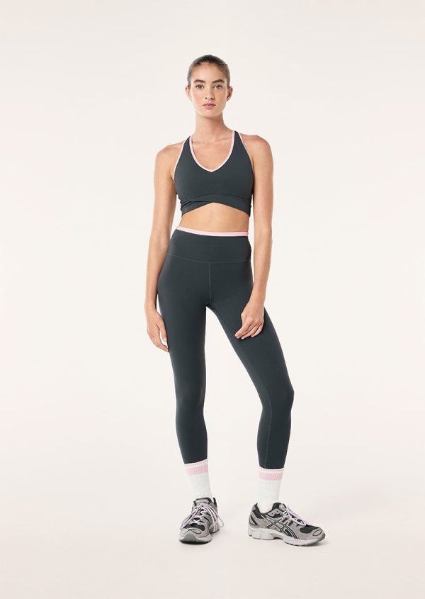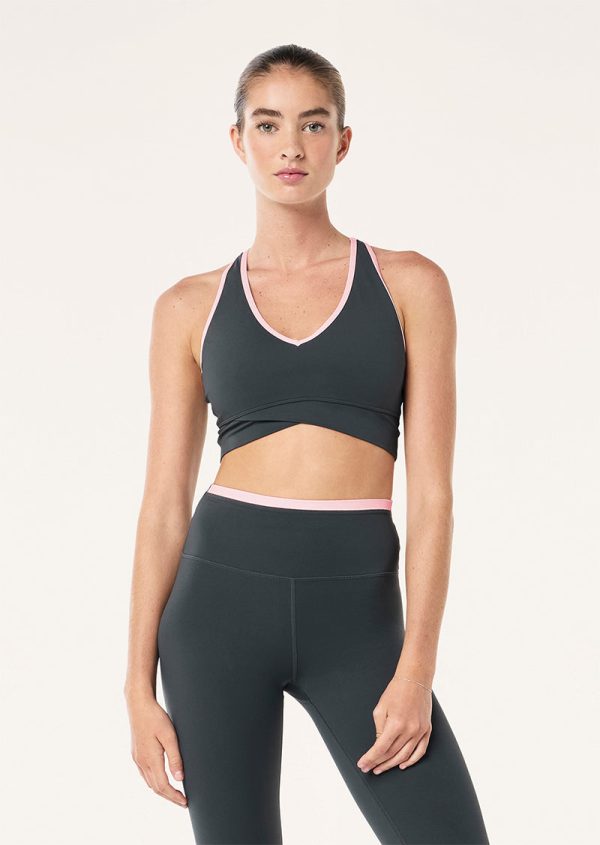 The Vita Bra in Asphalt and Chalk Pink trim comes as part of our P.E Nation Exclusive Asphalt Collection. Constructed from our most lightweight active fabric, Active Lite, this sports bra features a V neckline and a racer back. Style this bra with the matching bike short or legging for the ultimate athleisure look.