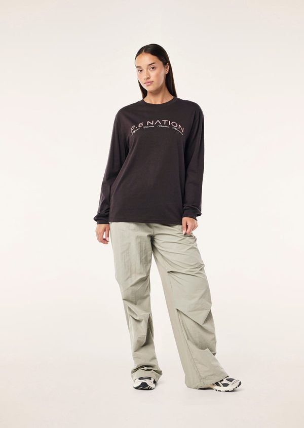 The Volume Long Sleeve Tee in Licorice is made in our midweight cotton jersey, and offers a relaxed fit. Featuring a P.E Nation seasonal graphic, ribbed crew neck and cuffs, this piece is made to be layered and interchanged to get you through all parts of your day.